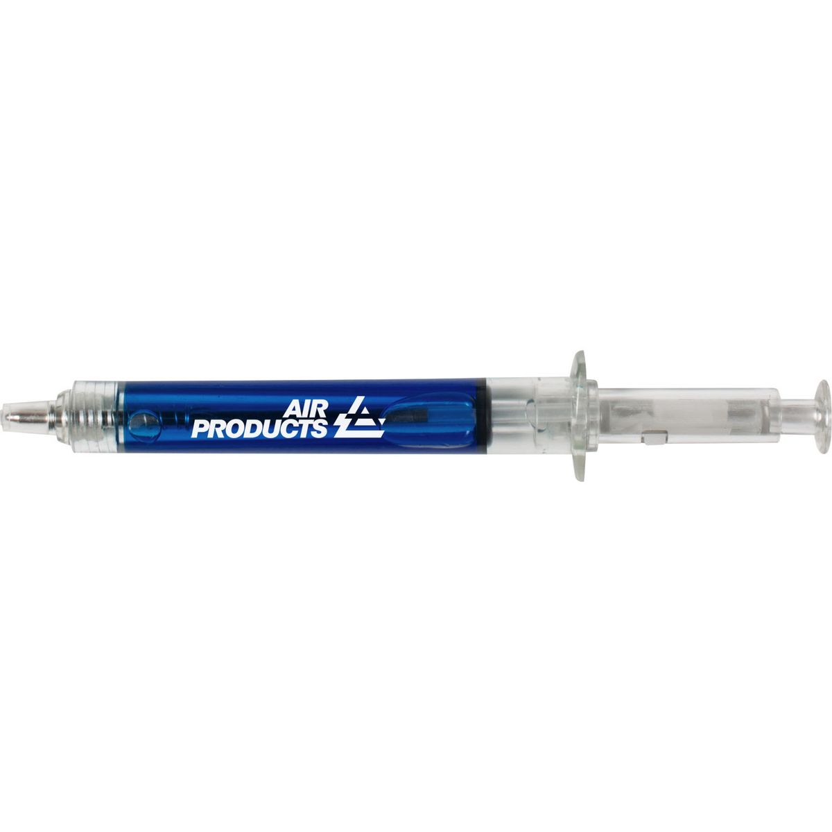 - Clear barrel with colored liquid.